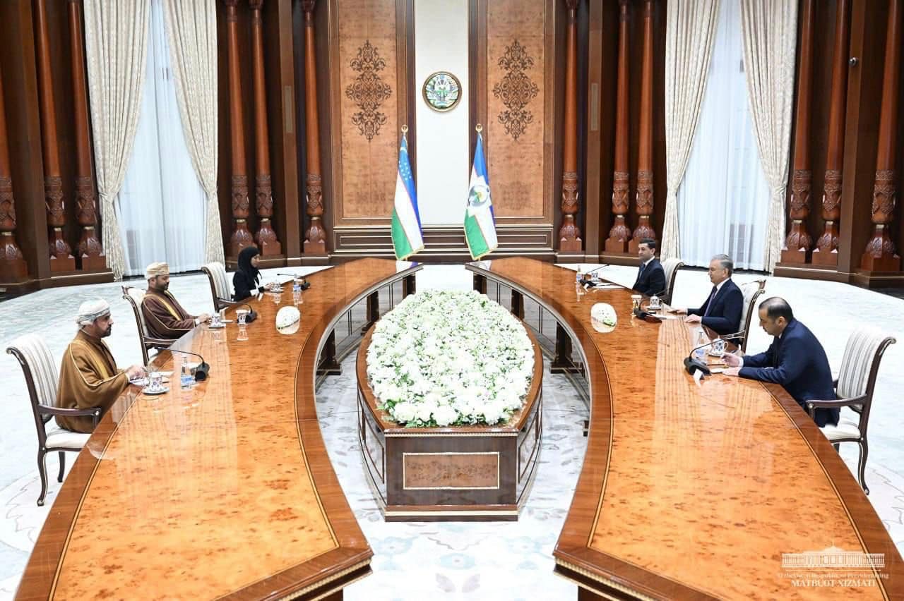 وبمناسبة انعقاد الاجتماع الوزاري الثاني لوزراء خارجية دول مجلس التعاون ودول آسيا الوسطى وزيارة معالي السيد وزير الخارجية على رأس وفد سلطنة عمان المشارك، استقبل فخامة الرئيس شوكت ميرضيانييف رئيس جمهورية أوزبكستان معالي السيد بدر بن حمد بن حمود البوسعيدي وزير الخارجية في مبنى إدارة رئيس الجمهورية.